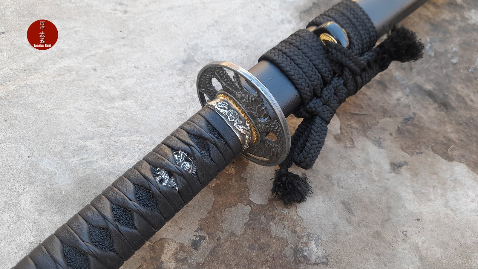 Same japones, ito de cuero negro, lo que le da un contraste particular.