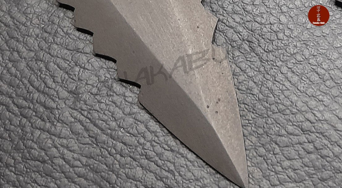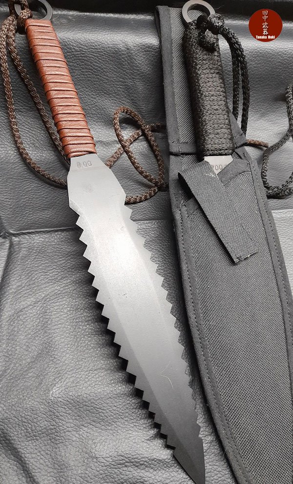Nuestro Shikoro Kunai esta Fabricado desde una planchuela de acero sae 1045, con numero de serie, templado en agua, y ennegrecido con un tratamiento de oxido controlado. Viene con funda de cordura, y 3,40 mts de ito en el grip que se puede desenroscar.
